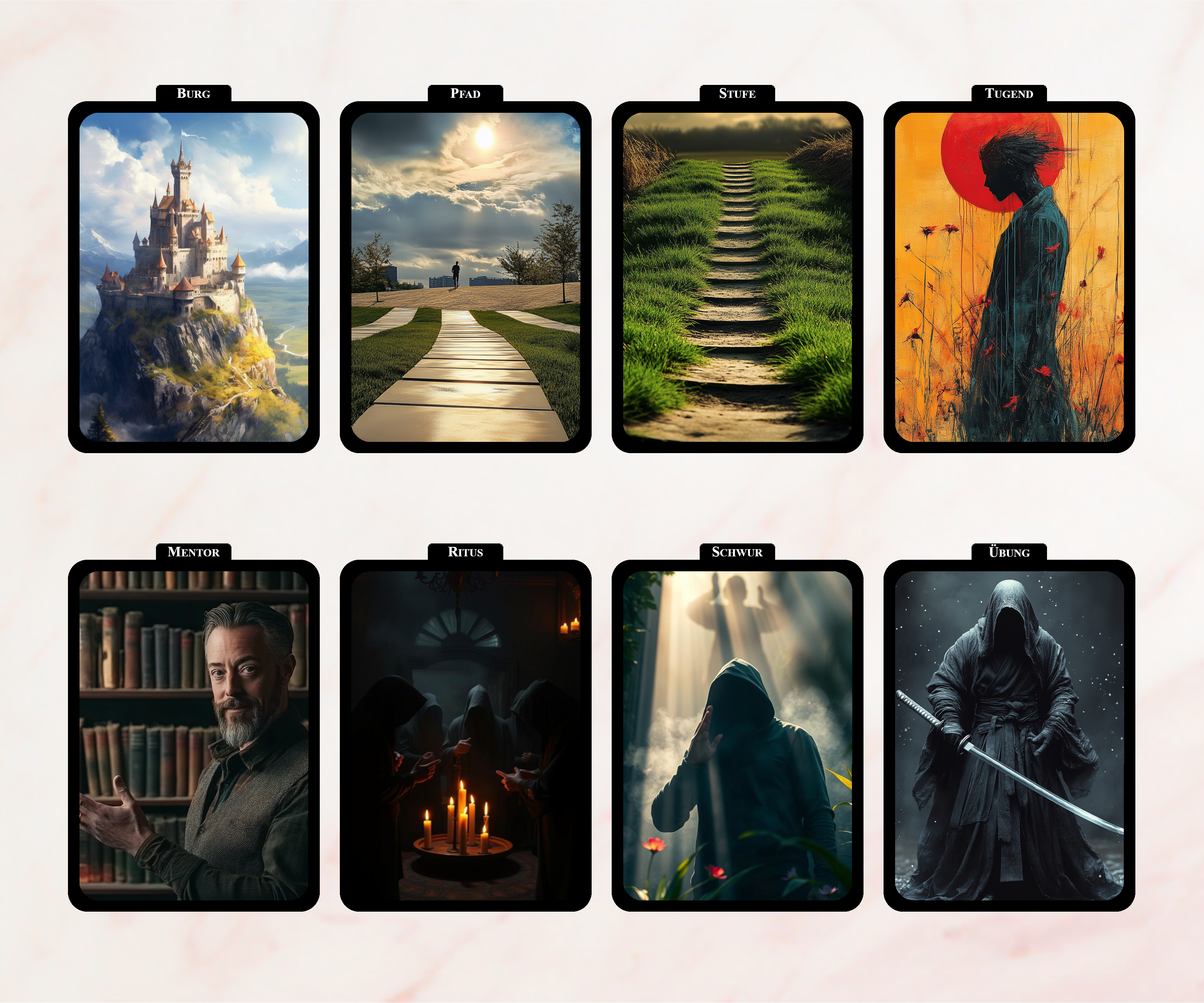 Während unzähliger Testspiele ist aufgefallen, daß es mitunter schwer ist, darauf zu achten, Karten eines gewissen Typs nur einmal zu spielen, weil man die bereits gespielte Karte auf dem mit vielen anderen Karten übersäaten Tisch übersieht. Dafür sind Spielmatten ganz praktisch, die feste Orte für die Typen angeben. Die hier zum Download angeboteten Bilder (300dpi) sind frei verfügbar und können bei professionellen Anbietern in Spielmatten umgewandelt werden. Die unten angegebenen Bilder sind Empfehlungen. Wer selber basteln möchte, kann die ebenfalls freien GIMP-Dateien nutzen (Achtung, die sind groß und daher gezippt).